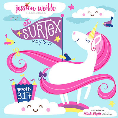 Yesterday we looked a flyers for the Blue Print Show and today we turn our attention to Surtex. One of the many highlights at this top New York exhibition will surely be the Pink Light Studio who will be showing new designs by 20 talented artists. Scroll down to enjoy their varied and colourful flyers...